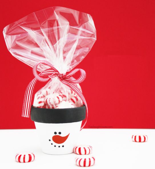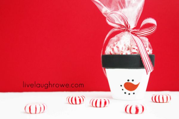 Créditos:http://livelaughrowe.com/diy-frosty-the-snowman-candy-gift-pots/