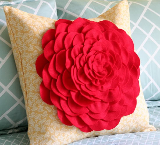 Veja que linda flor de feltro você pode confeccionar para aplicar em uma almofada e decorar a sua sala ou qualquer ambiente da