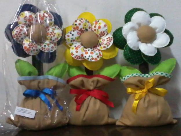 Acima você confere lindos cataventos feitos em feltro, colados em espetinhos de churrasquinho.