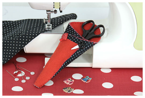 Se você tem habilidades com costura, que tal confeccionar esse lindo porta-tesoura com feltro e tecido colorido?