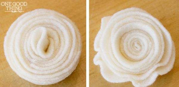 Agora, faça muitas flores de feltro, até conseguir a quantidade desejada para revestir toda a base da sua guirlanda. Se você quiser faça também flores de feltro com a última camada com babados, além das flores com modelo reto.