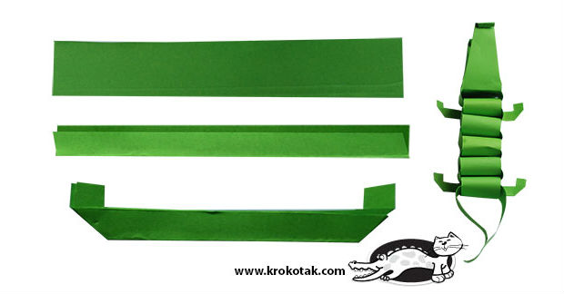 Dobre uma tira larga ao meio e nas pontas e você fará as patas do seu jacaré.