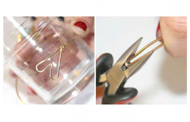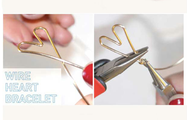 Para começar a fazer o bracelete, você deve pegar uma das pontas do arame e, com a ajuda de um alicate, iniciar o processo de formato do coração.