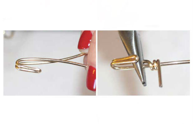 Ainda com o auxílio de um alicate, você deverá fazer mais uma volta nessa ponta e fazer três nós volteados por sobre o próprio arame.