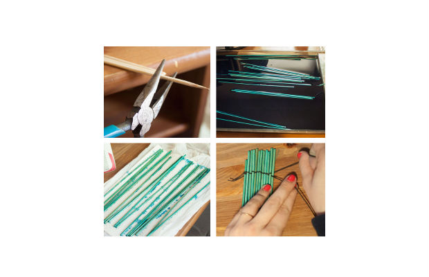Primeiro, corte todas as pontas dos seus palitos de churrasco.