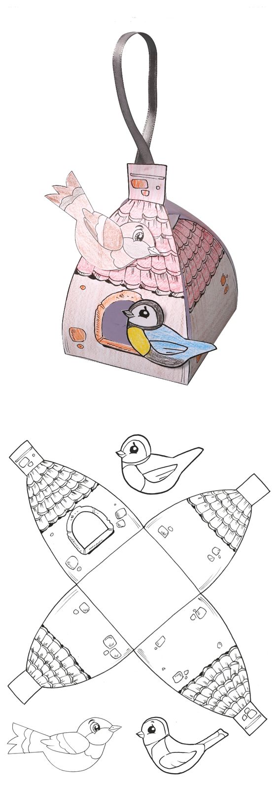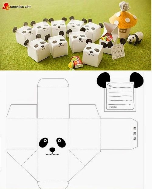 Imprima o molde no papel estruturado branco. Mas caso a sua impressora não imprima em papel mais grosso, imprima primeiramente em uma folha branca de papel A4, e depois transfira a impressão para o papel mais grosso. Monte a caixa, colando as abas, para ficar mais firme. Encaixe a parte das orelhas, coloque as guloseimas dentro e feche. E está pronto!