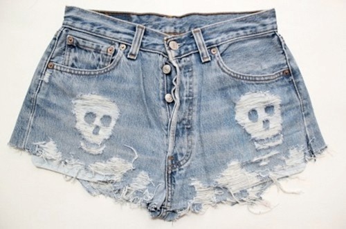 Quem gosta de caveiras, pode desfiar duas caveiras na parte das pernas do shorts ou quem sabe no bolso do shorts. Na hora de usar o shorts escolha camisetas e um sapato bem legal.