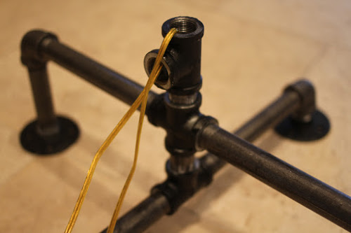 Agora, termine de fazer os pés de sua luminária. E lembre-se de já começar a posicionar os fios dentro dos canos da sua luminária.
