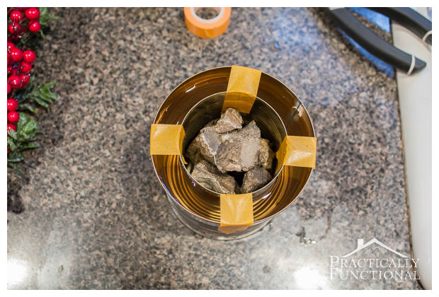 Coloque uma lata dentro da outra e prenda-as com fita adesiva.