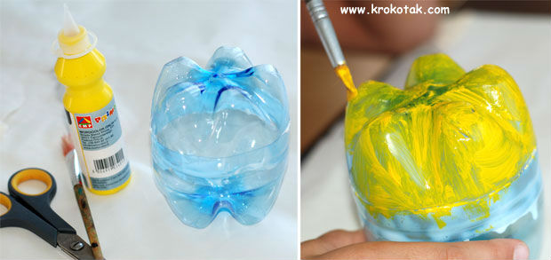 A seguir, pinte a sua garrafa pet com tinta acrílica.