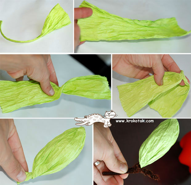 Com o papel crepom, faça a folhinha da sua maçã.