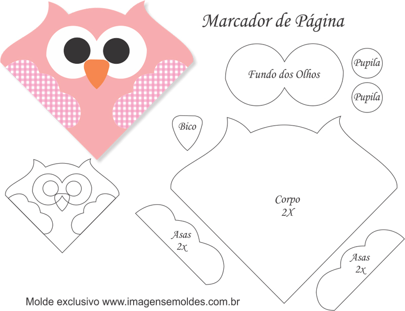 Moldes do marca página em EVA