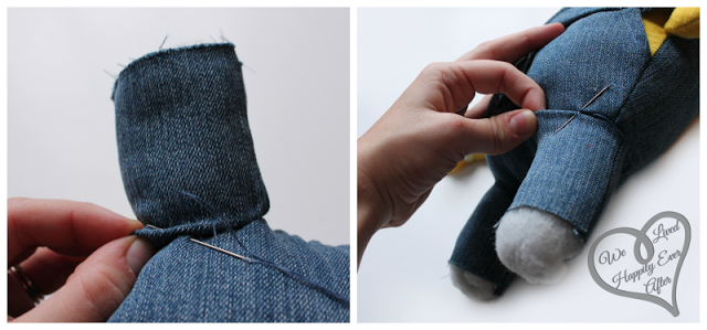 Para finalizar, faça as pernas com o mesmo tecido da roupa.