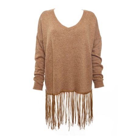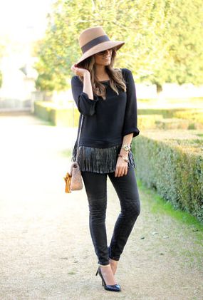 Se você tem quadril largo a blusa com franjas é a melhor pedida para você, pois como a franja avoluma a região do corpo onde está localizada, ela criará ilusão de parte superior maior e assim disfarçará o seu quadril. Porém a franja deve estar localizada mais para perto dos ombros; nada de usar blusa com franja na barra, pois avolumará ainda mais o quadril.