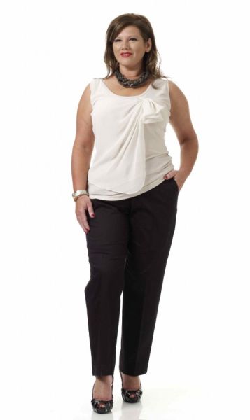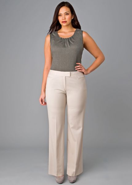 As calças sociais, normalmente de alfaiataria, com modelagem reta, cintura no lugar e tecidos estruturados, são ótimas opções para as mulheres gordinhas, pois, além de deixar o visual mais elegante, elas alongam a silhueta e disfarçam quadril largo e a coxa grossa.