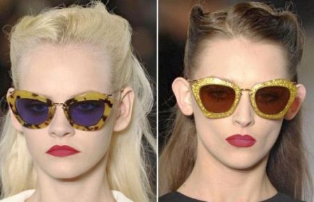 Além das armações tradicionais você ainda pode encontrar óculos com armação colorida e formato bem inusitado, como os óculos com armações em formato de coração; armações “gatinho” (ícone da década de 50 e que está em alta novamente) e armações coloridas com formas geométricas e gigantescas. E o óculos com armação redonda (tão amado pelo Beatle John Lennon) também retorna nesta temporada na versão colorida.