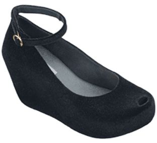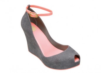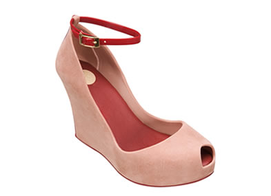 A Melissa trouxe vários saltos wedge, e eles estão presentes em sandálias, em sapatos fechados, em tamancos e até mesmo em modelos de sapatos peep toes.
