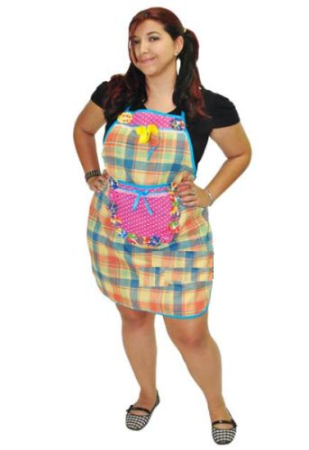 Se você não quer aderir totalmente ao espírito junino, usando um vestido tradicional de festa junina, você pode investir nos aventais com características de festa junina, confeccionados com tecido xadrez, com fitas, laços, flores, e mix de materiais e estampas. E como o avental é ultracolorido aposte em peças de roupas com cores básicas e neutras para usar por baixo. Mas não se esqueça de caprichar no visual, fazendo duas trancinhas ou dois rabinhos e abusando das pintinhas bem marcadas e do blush rosa bem forte.
