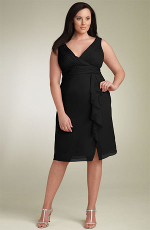 Vestidos com decotes em “V” também devem ser adotados por mulheres gordinhas e baixinhas, pois, eles alongam o pescoço, desviam a atenção dos braços gordinhos e, consequentemente alongam a silhueta.