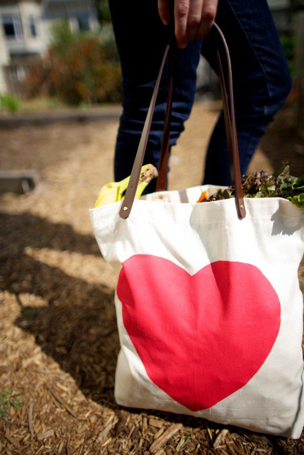 Essa bolsa também é muito simples de personalizar, basta você cortar de forma inversa seu coração deixando centro dele cortado, colocar sobre uma bolsa lisa e pintar com tinta de tecido, fica um charme.