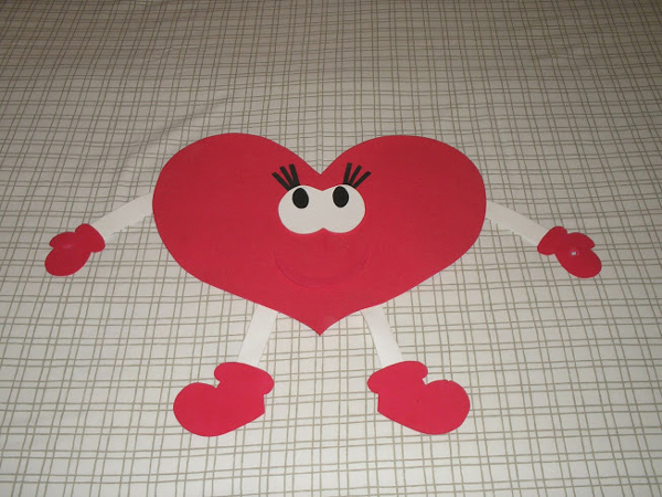 Para quem deseja decorar ambiente, seja para dia dos namorados, eventos na escola, igreja ou em qualquer ambiente desejado, basta transferir o coração simples (impresso de forma grande) para uma folha de EVA e finalizar os pequenos detalhes, como mãos, pernas e o “rosto”.