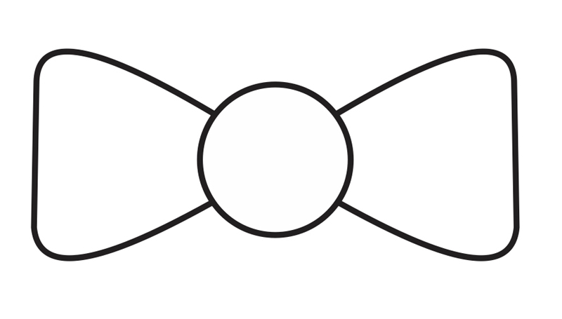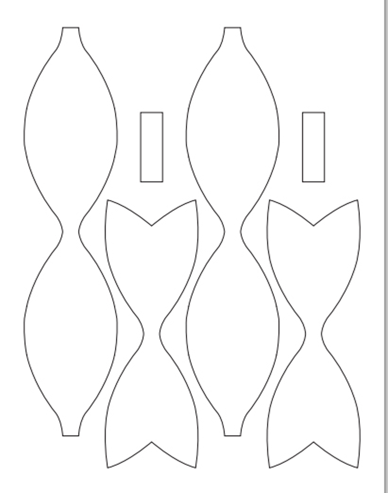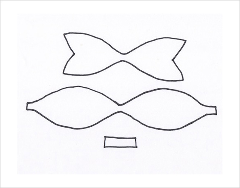 Outro modelo simples de laço é o modelo em que você cola na parte detrás as pontas da parte curvada do molde a seguir. Cola também a tirinha no meio, e cola esta parte sobre a parte com pontas recortadas em “V”.