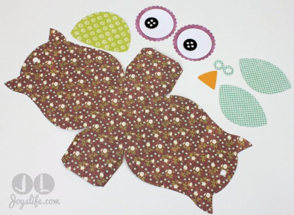 Em seguida, para finalizar a sua peça, basta terminar de colar as partes da sua coruja escolhida. E está pronto!