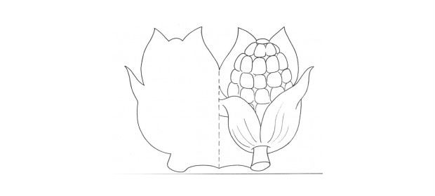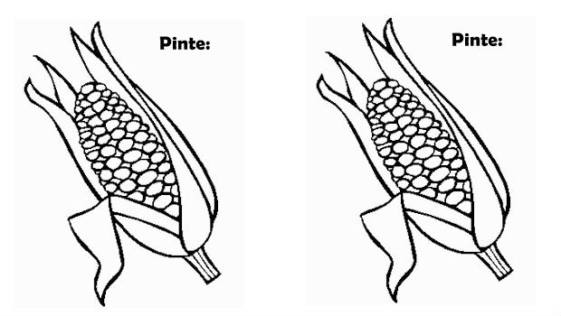 Acima você confere um molde de espiga de milho que você pode oferecer para as crianças pintarem.