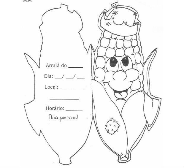 Já na imagem acima você confere um molde de convite específico para festa junina.