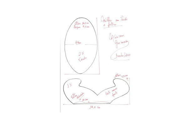 Basta desenhar o molde no tecido, recortar, acrescentar o enchimento de acrílico e costurar.