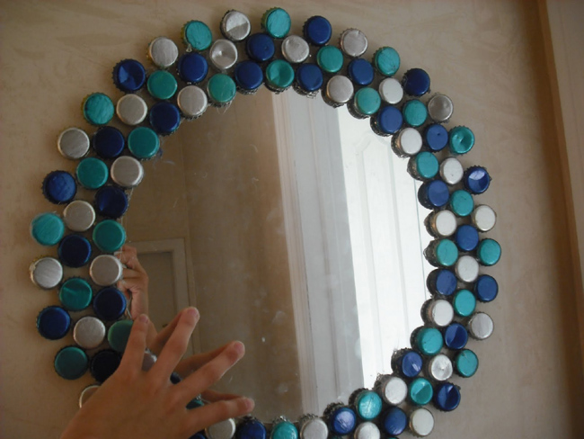 moldura com tapinhas de garrafa