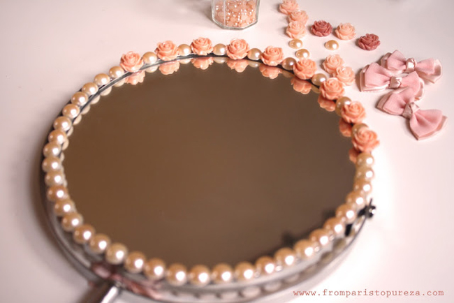 moldura de espelho com pérolas