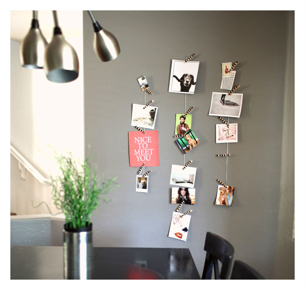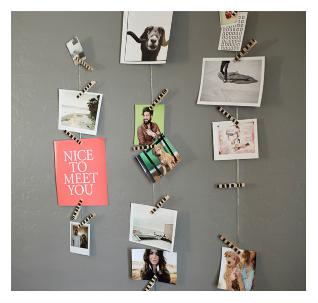 Prenda suas fotos nos prendedores.