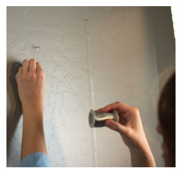 Instale os pregos no lugar desejado e instale seu arame ou seu cordão.
