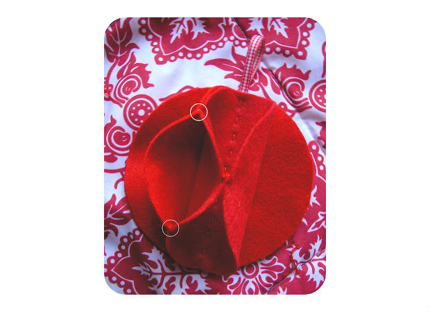 Costure esses círculos ao meio, com linha e agulha para pesponto, conforme na imagem acima.