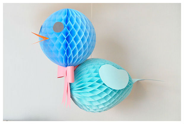 • Fonte: http://ohhappyday.com/2014/04/diy-honeycomb-birds/