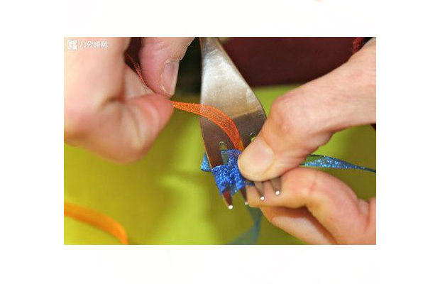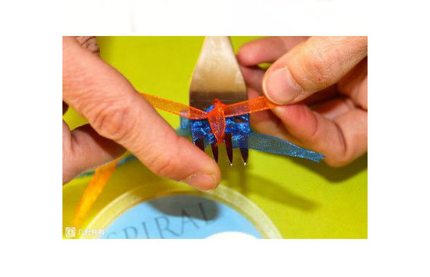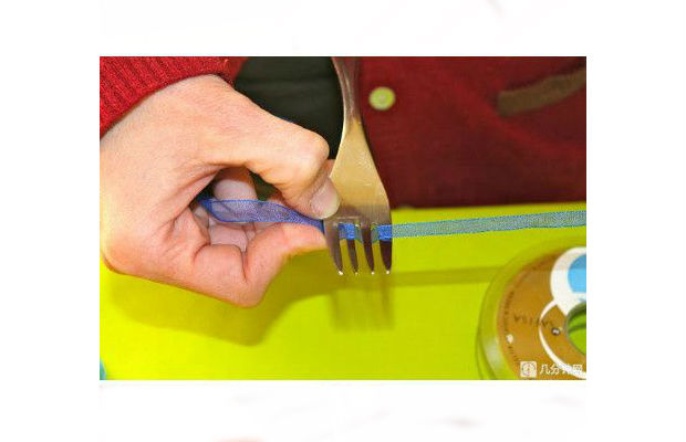 Pronto. Sua fita está prontinha para decoração. Basta tirá-la do garfo, cuidadosamente.