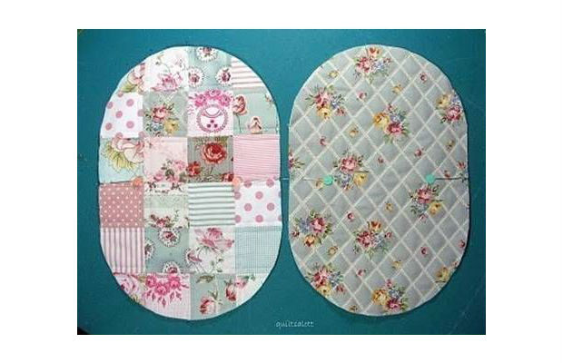 Costure um tecido no outro e, para dar um acabamento mais bonito, costure um viés no entorno do material.