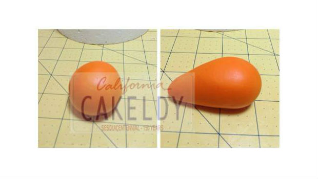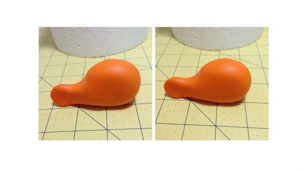 Em seguida, apalpe-a em uma das pontas, criando uma forma parecida com uma coxinha de galinha.