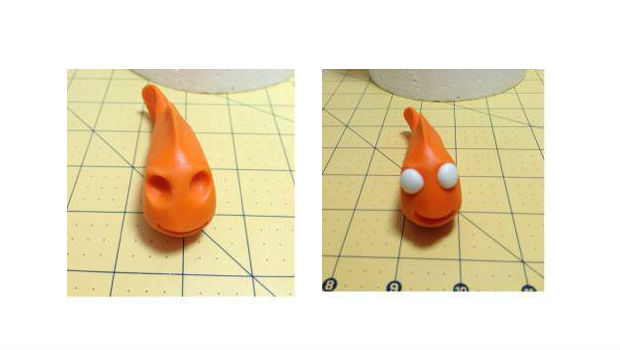 Dentro dos olhos, cole uma bolinha de massinha branca.