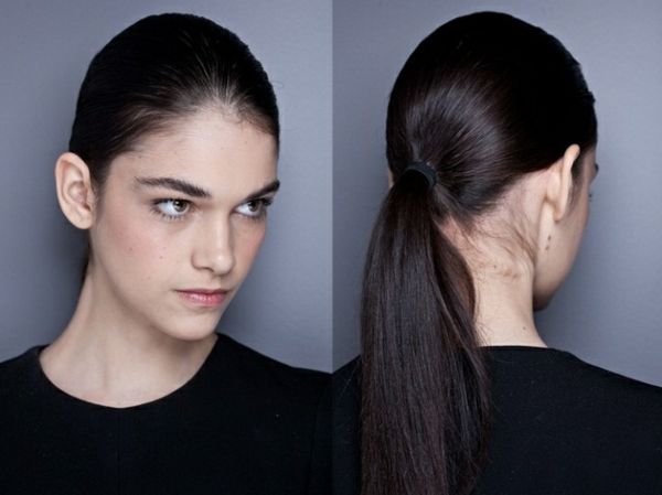 O rabo de cavalo vem bem liso e um pouco mais baixo do que o usado atualmente; além de ter a frente toda puxada para trás e todos os fios ficarem no lugar. E para garantir um bom acabamento do rabo de cavalo use um elástico com a cor exata do seu cabelo, ou enrole uma mecha de cabelo sobre o elástico, para cobri-lo.