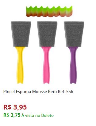 O pincel com espuma é encontrado em vários formatos e há um modelo para cada efeito pretendido. O pincel com esponja redondo é indicado para fazer bolas na superfície e para dar batidinhas, preenchendo uma área. O pincel com espuma mousse pode ser usado para criar detalhes geométricos e preenchimentos.