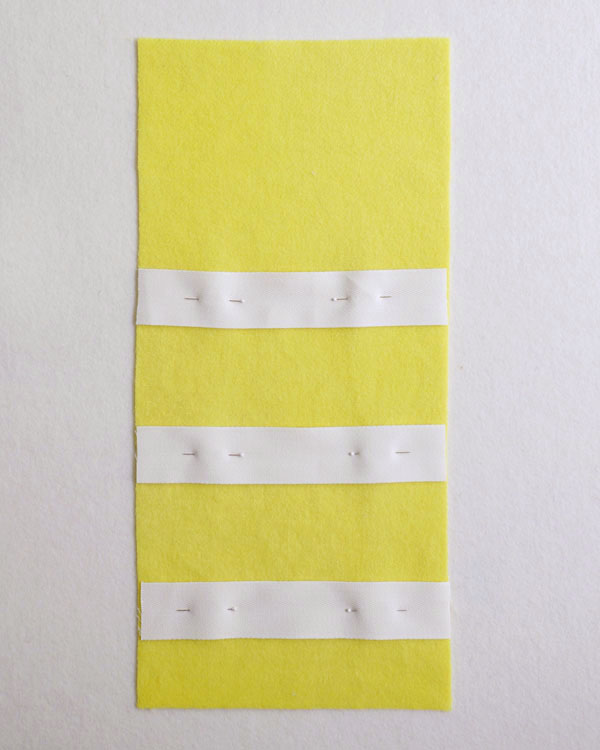 Prenda-as em 3 fileiras sobre a sua sarja grande, usando alfinetes, como na imagem acima.