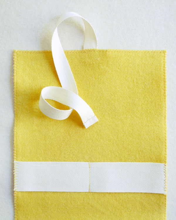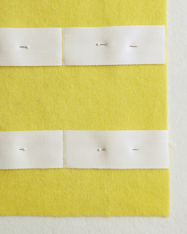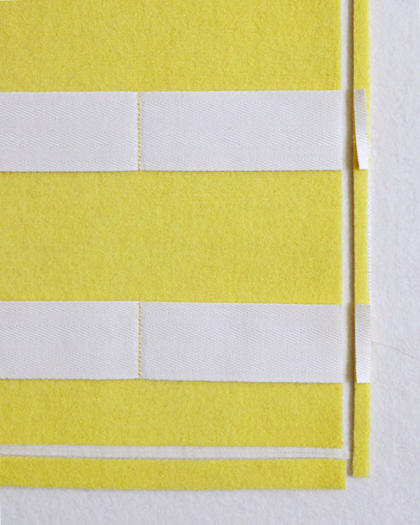 Costure um pedaço dessa tira de sarja entre os tecidos, como na imagem acima.