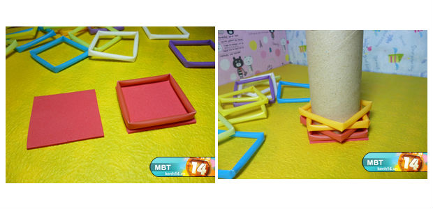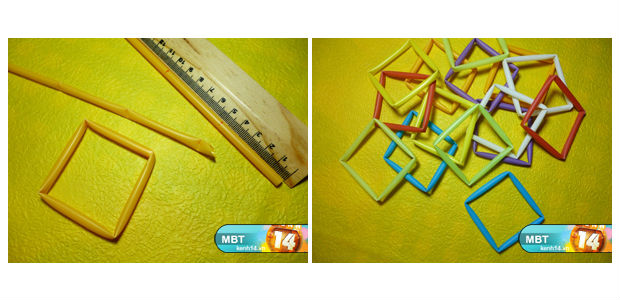 Faça quadrados com esses canudinhos, colando-os com cola quente.