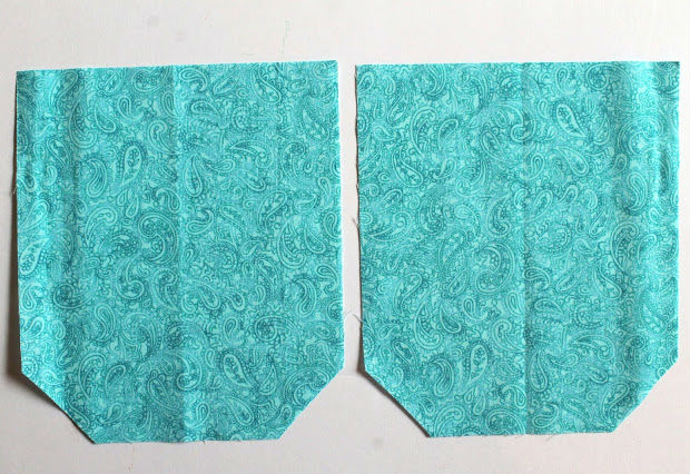 Recorte 2 retângulos de tecido no tamanho 15cm x 17,5cm