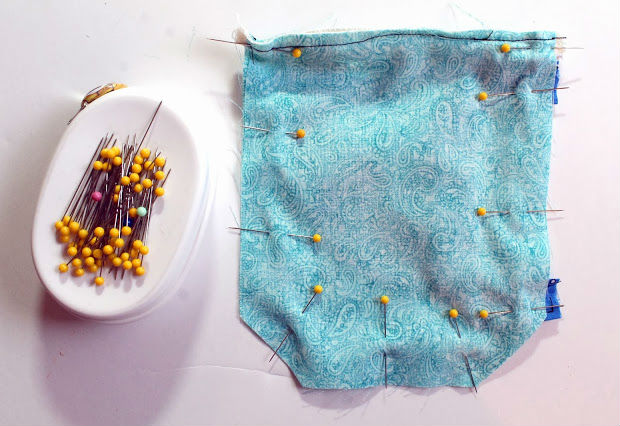 Agora, prenda essa parte que fará a alça da xícara e junte os dois tecidos com alfinetes.