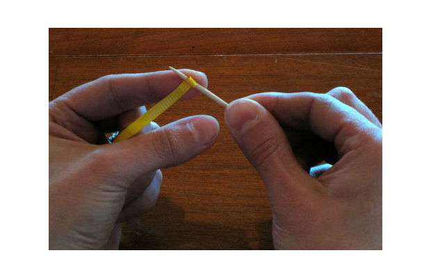 Comece enroscando e colando em um palito de dente um pedaço de fita colorida.