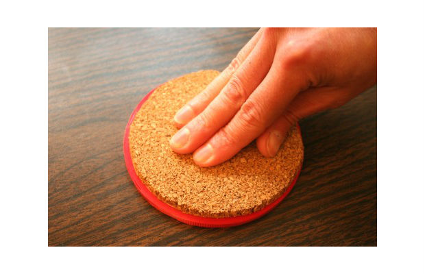 Cole a cortiça no porta copo, para que fique mais resistente.