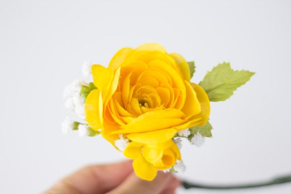 Agora, se você quiser, fixe mais algumas flores pequenas ao redor da flor maior.